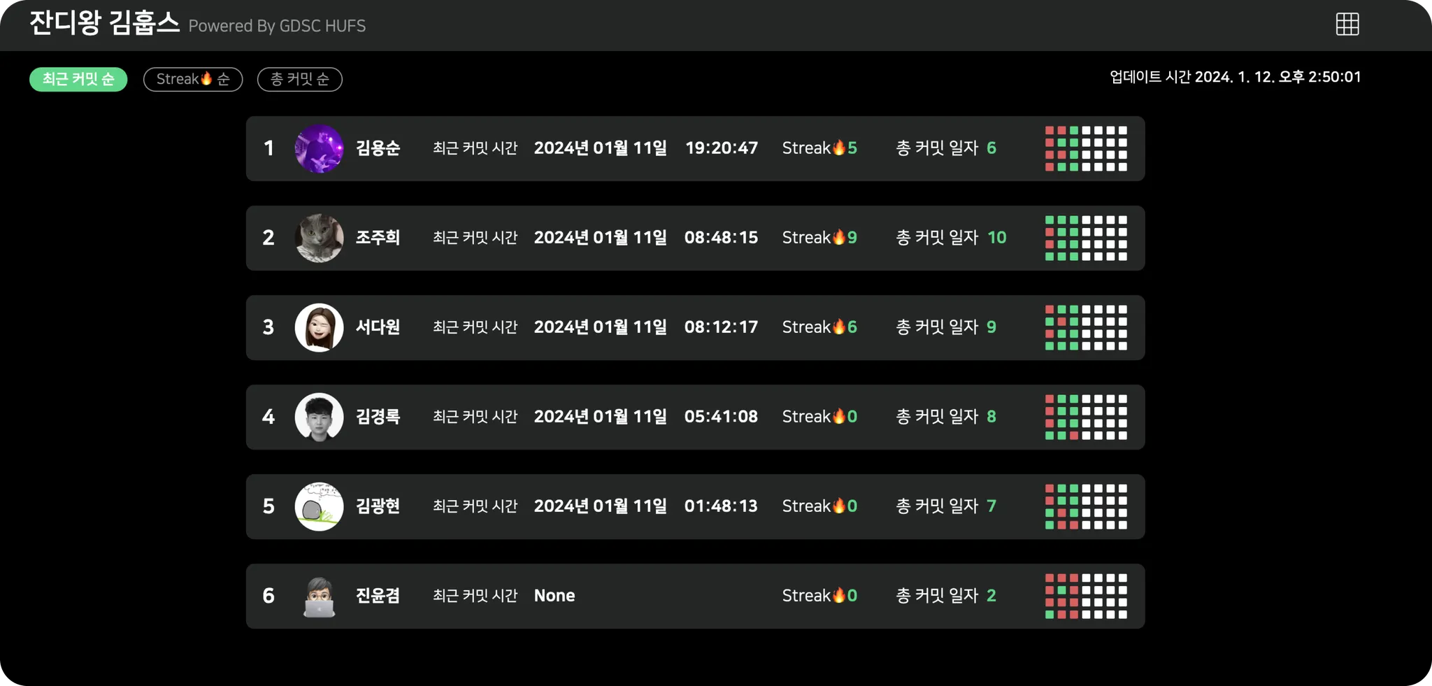 방학 기간 28일 연속 커밋 이벤트 ‘잔디왕 김훕스’